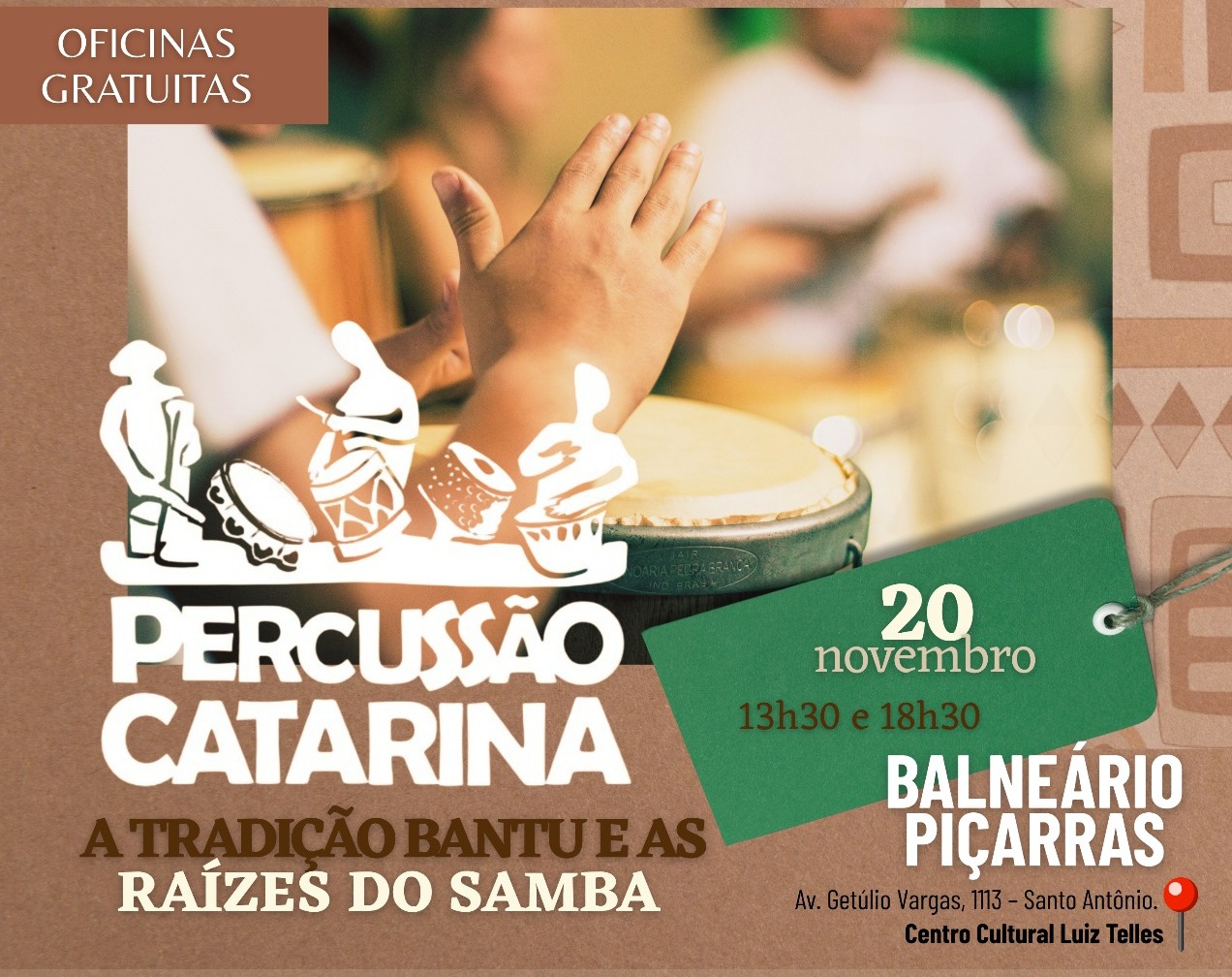 O Quê: Oficina Percussão Catarina: A tradição bantu e as raízes do samba;