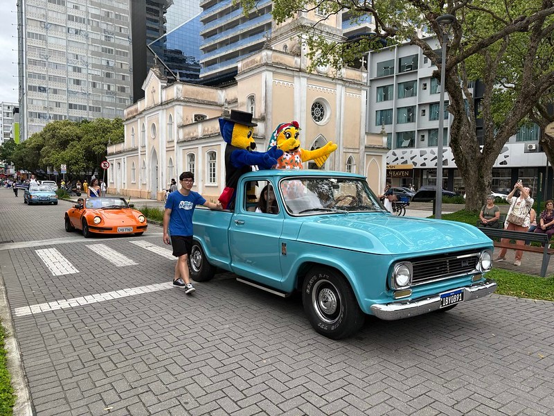 A Realeza da Marejada 2025, junto com representantes das edições de 2012 e 1987 e a Miss Itajaí/SC, desfilaram em carros antigos. Os mascotes da festa animaram o público.